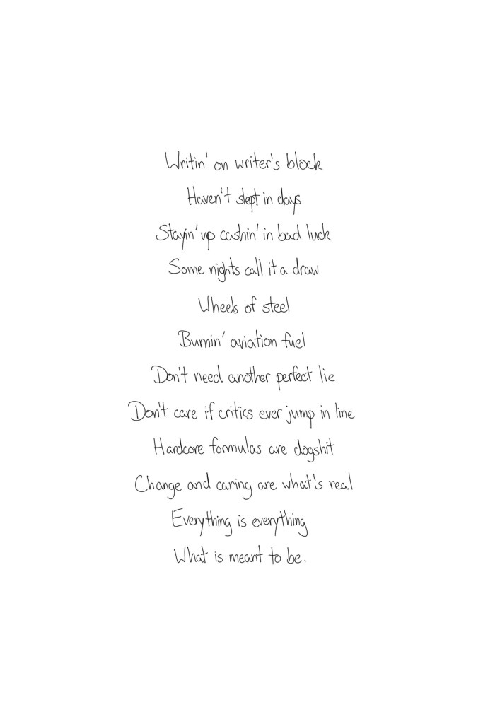 Composed of lyrics from: Mac Miller, fun., Saxon, One Republic, Dead Kennedys, Lauryn Hill